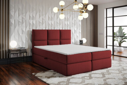 Łóżko kontynentalne kolor czerwony dwa materace + dwa pojemniki