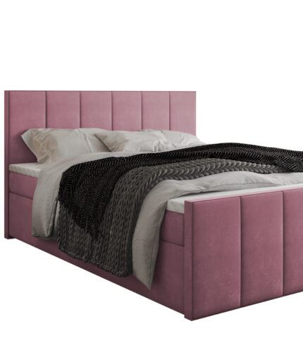 Łóżko kontynentalne kolor różowy dwa materace + dwa pojemniki