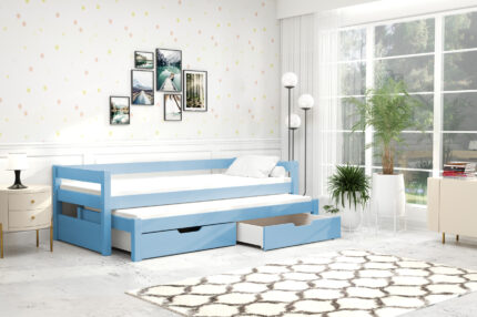 Łóżko dziecięce 2 osobowe + materace, szuflady/Niebieskie