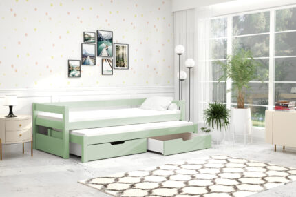 Łóżko dziecięce 2 osobowe + materace, szuflady/Miętowe