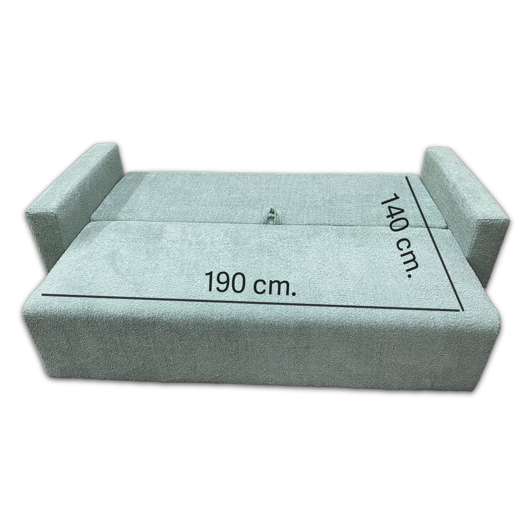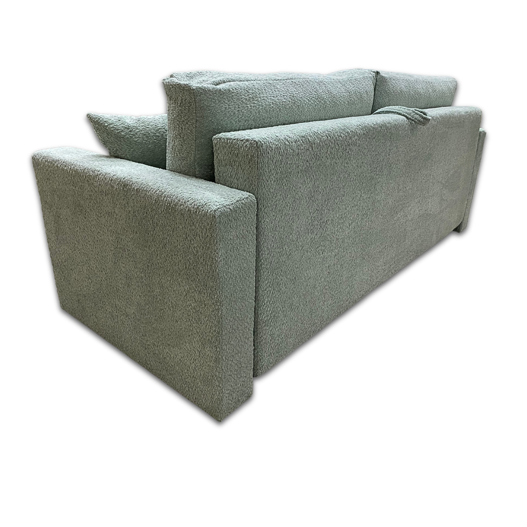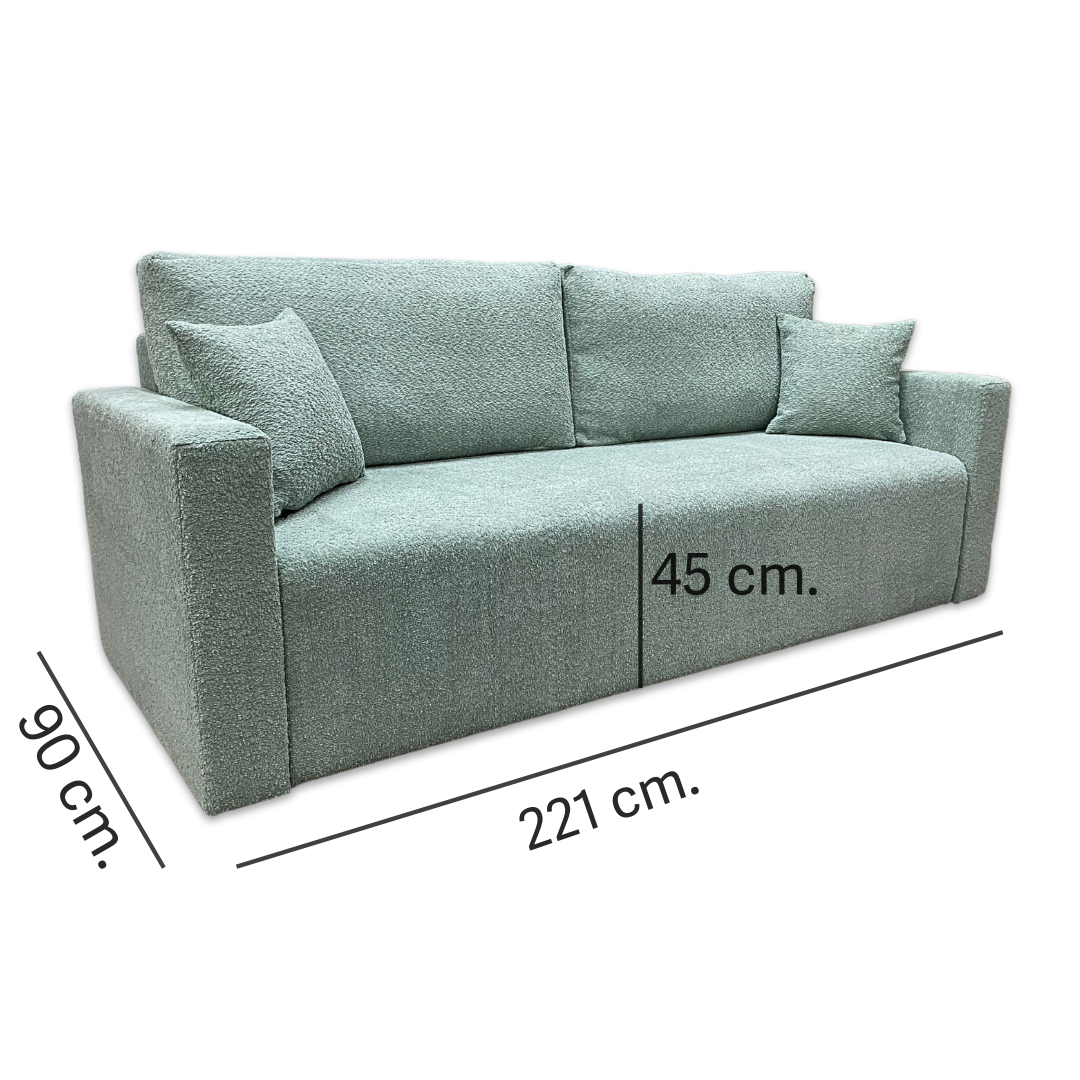 Ambra to stylowa kanapa rozkładana z funkcją spania i pojemnikiem na pościel, wykonana w modnej tkaninie boucle Abriamo (miętowa). Komfortowe siedzisko na sprężynie falistej i piance , system DL do łatwego rozkładania, oraz 2 poduszki i 2 jaśki w zestawie – to połączenie wygody, funkcjonalności i elegancji w jednym meblu.
