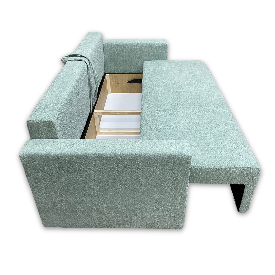 Kanapa rozkładana z funkcją spania Ambra w tkaninie Abriamo miętowa