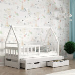 Łóżko DOMEK 2 osobowe + dwa materace BIEL