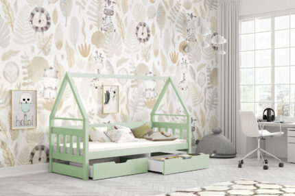 Łóżko DOMEK z szufladami miętowy + materac 160×75