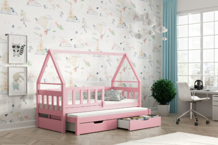Łóżko dla dziecka DOMEK z szufladami róż