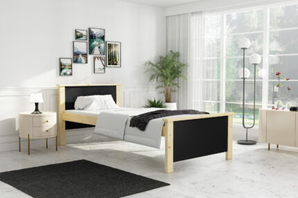Łóżko pojedyncze WOJTEK + materac 200×90 czarny