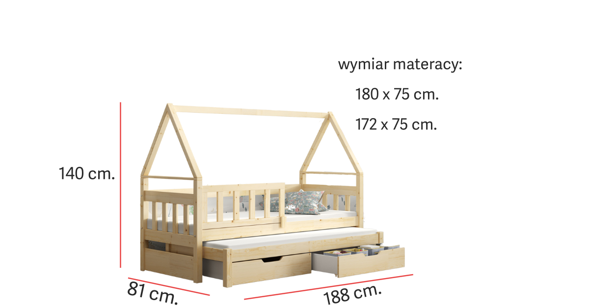 Łóżko DOMEK z szufladami+ barierka + materac 180×75