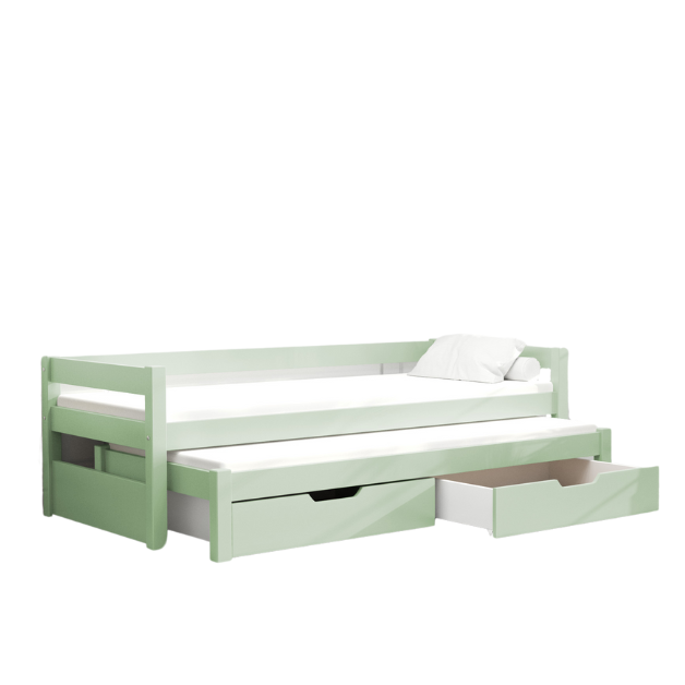 Łóżko dziecięce 2 osobowe + materace, szuflady/Miętowe