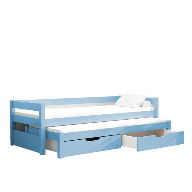 Łóżko dziecięce 2 osobowe + materace, szuflady/Niebieskie