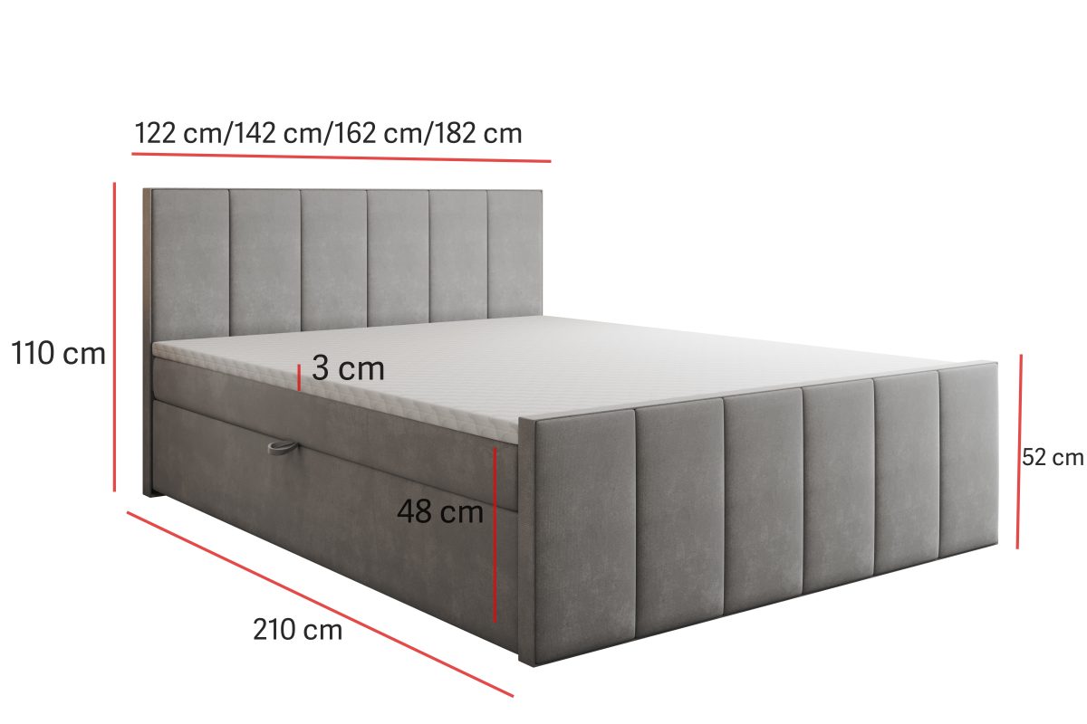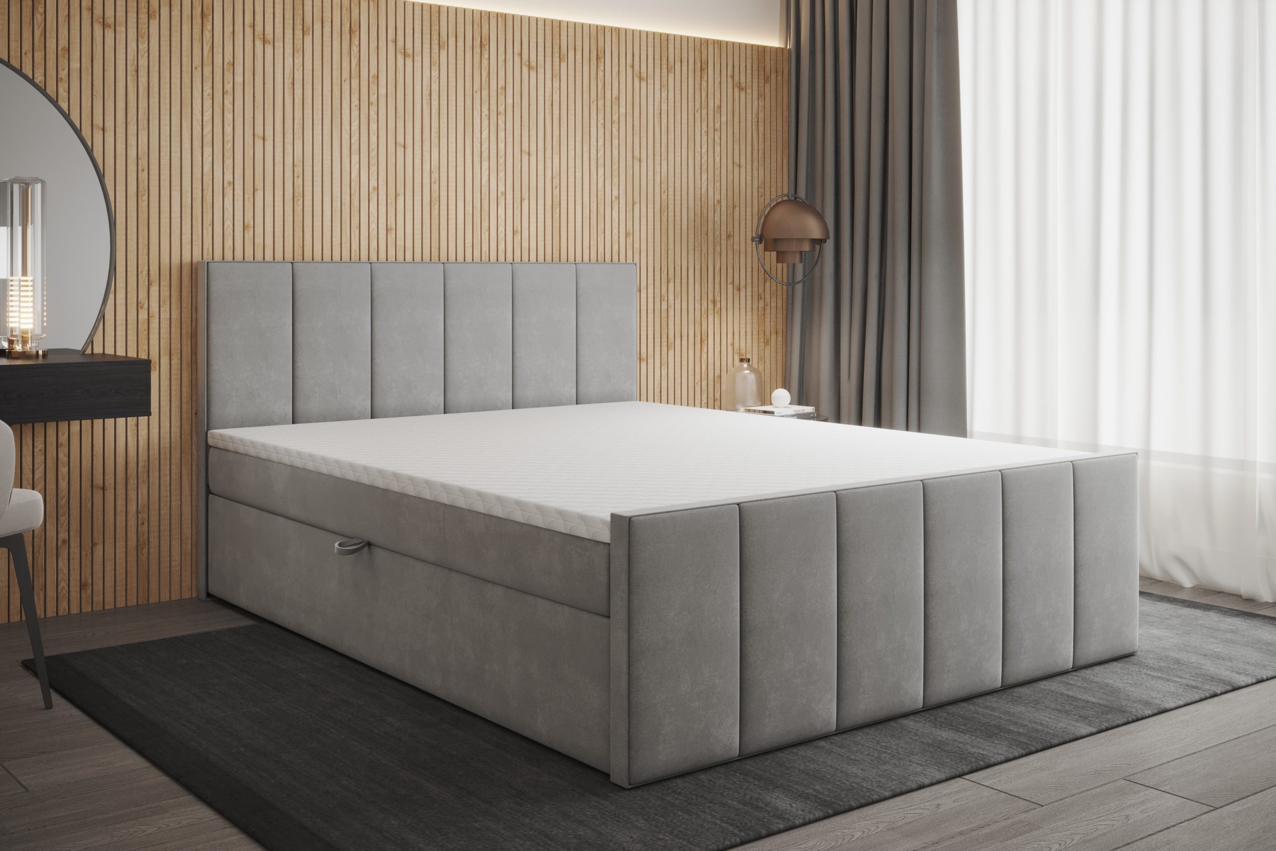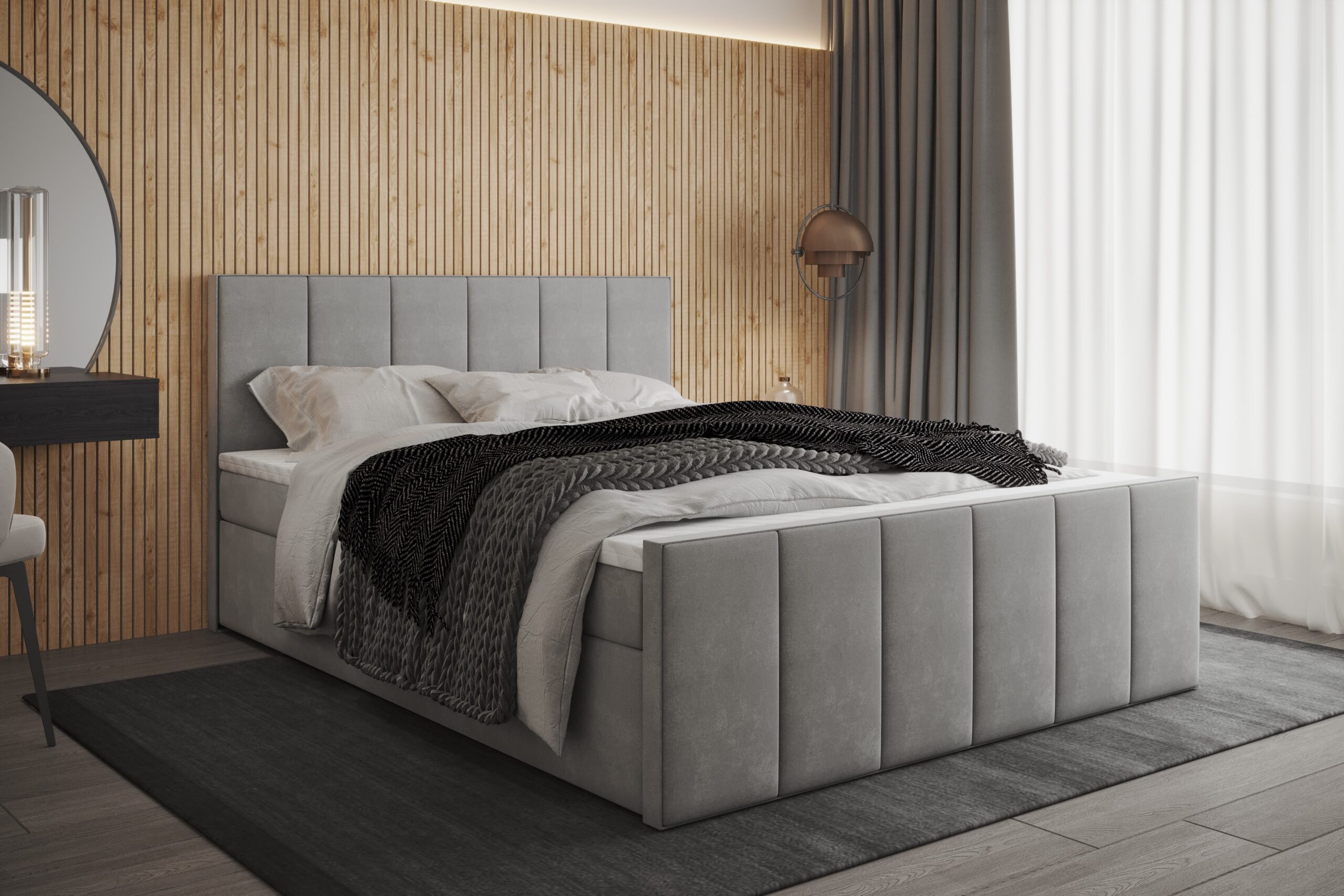 Łóżko Kontynentalne RUBI sztruks jasny szary