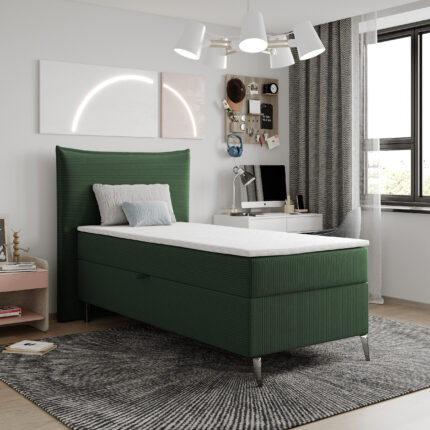 Łóżko młodzieżowe kontynentalne sztruks butelkowa zieleń