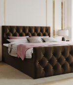 Łóżko Kontynentalne pikowane brązowy velvet materac bonell
