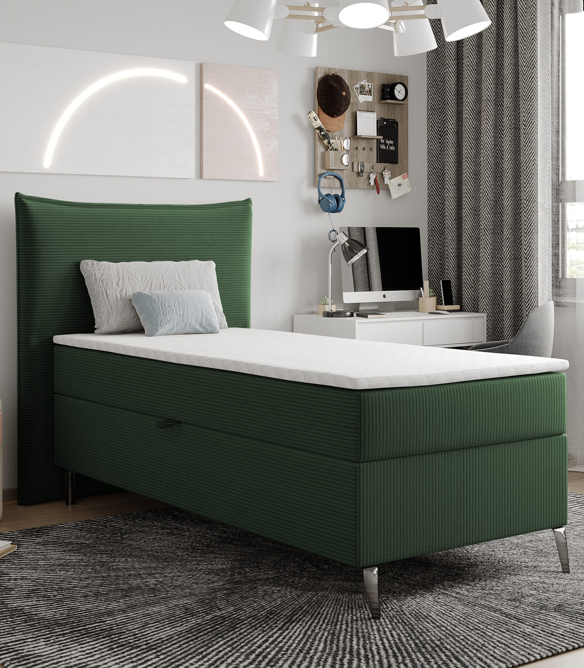 Strona główna Łóżka Łóżka kontynentalne Łóżko młodzieżowe kontynentalne sztruks butelkowa zieleń