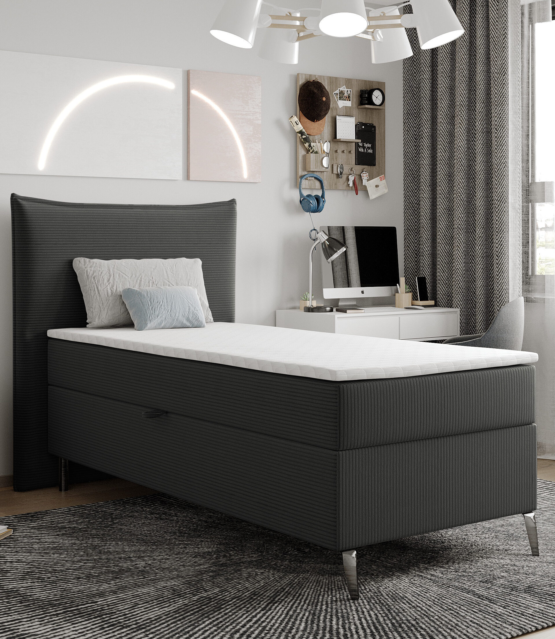 Łóżko młodzieżowe kontynentalne sztruks grafitowy