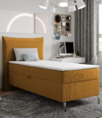 Łóżko młodzieżowe tapicerowane sztruks musztardowy
