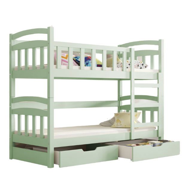 Łóżko piętrowe dla 2 osób KASPER kolor miętowy z materacem