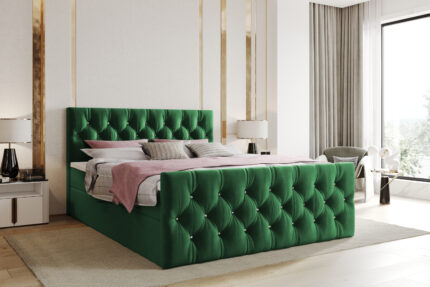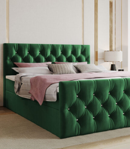 Łóżko Kontynentalne dwa pojemniki na pościel z materacem butelkowa zieleń