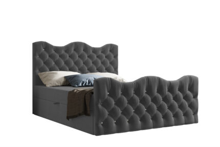 Łóżko pikowane kryształkami ciemny szary z materacem