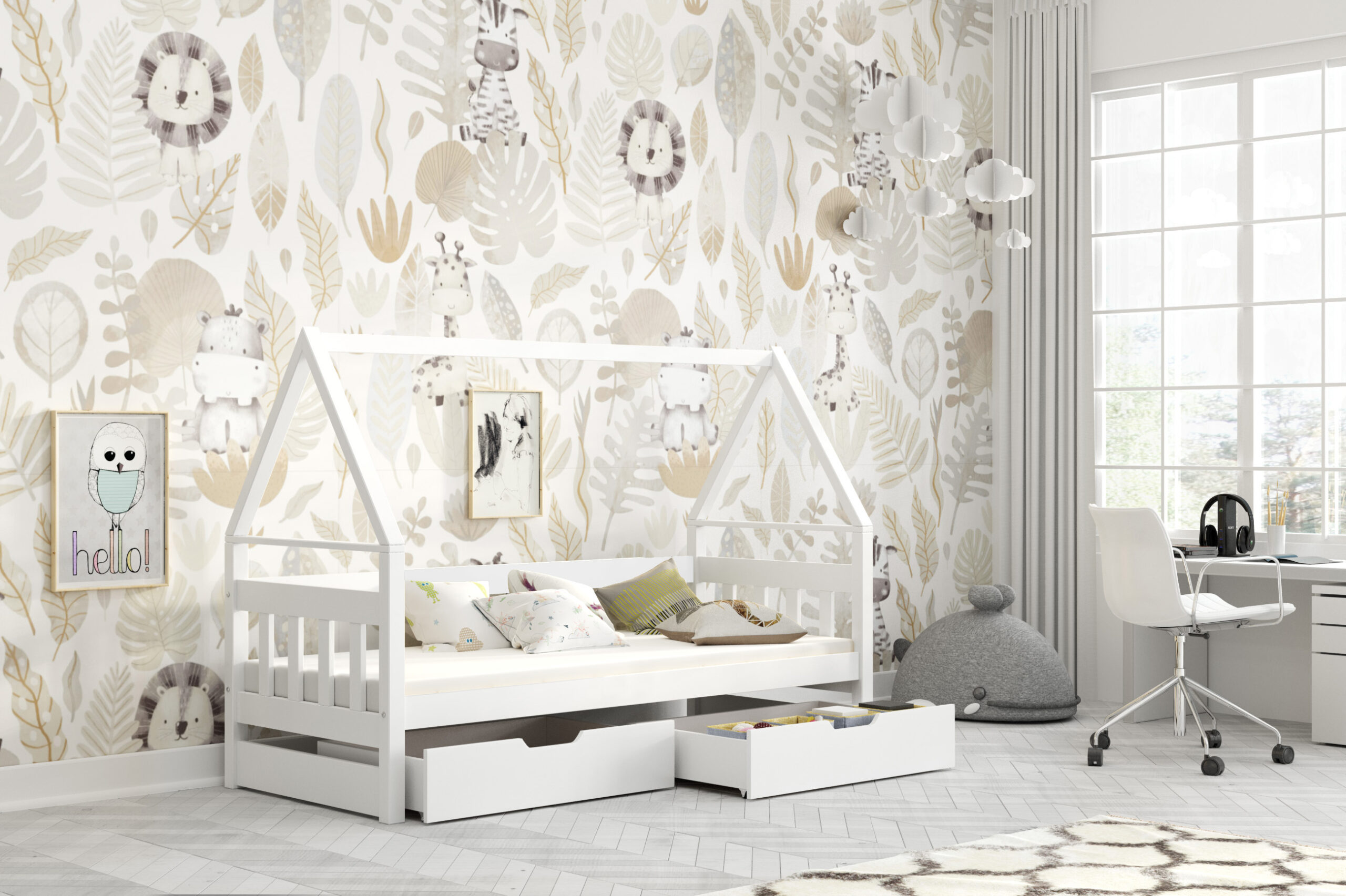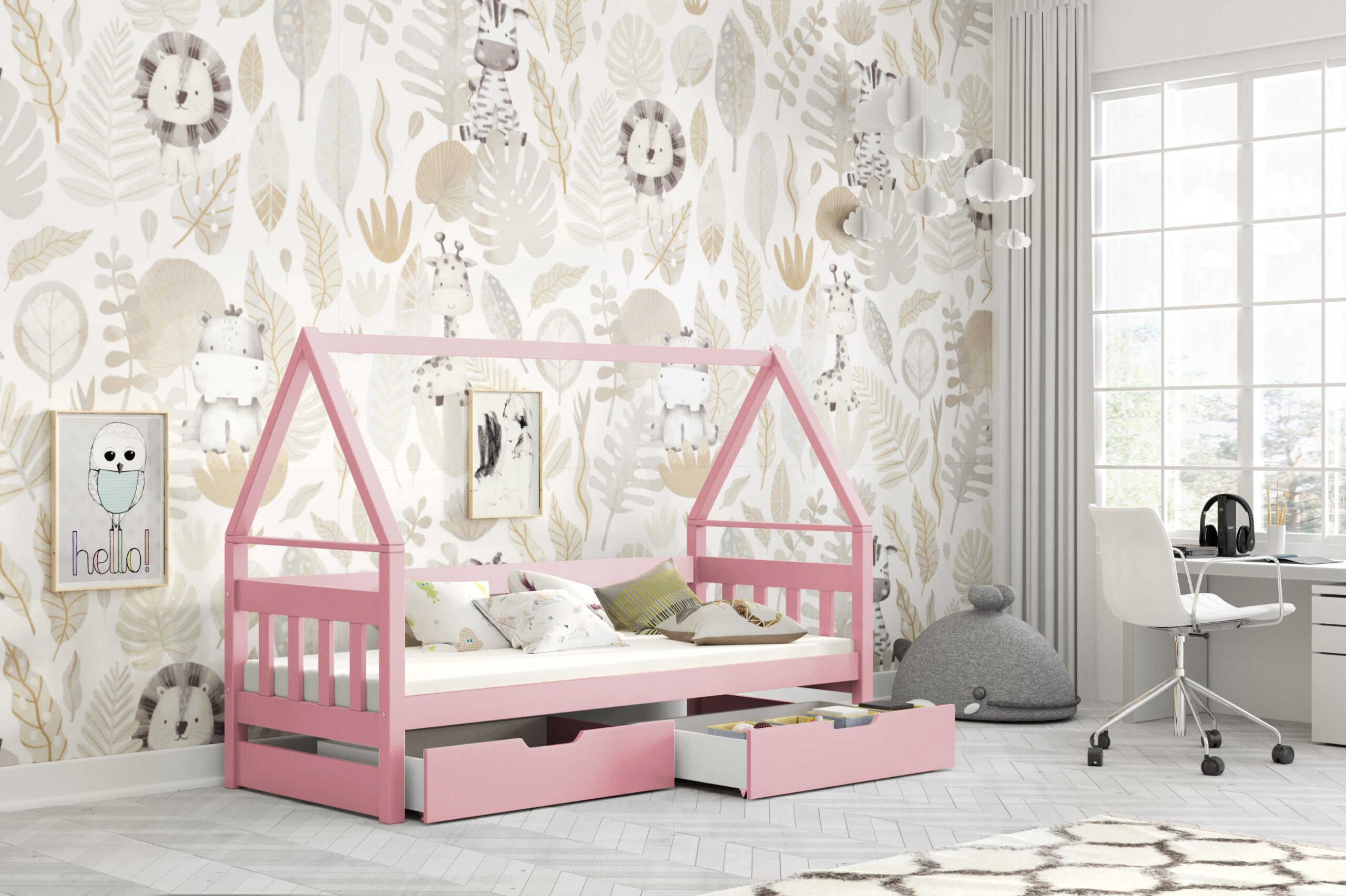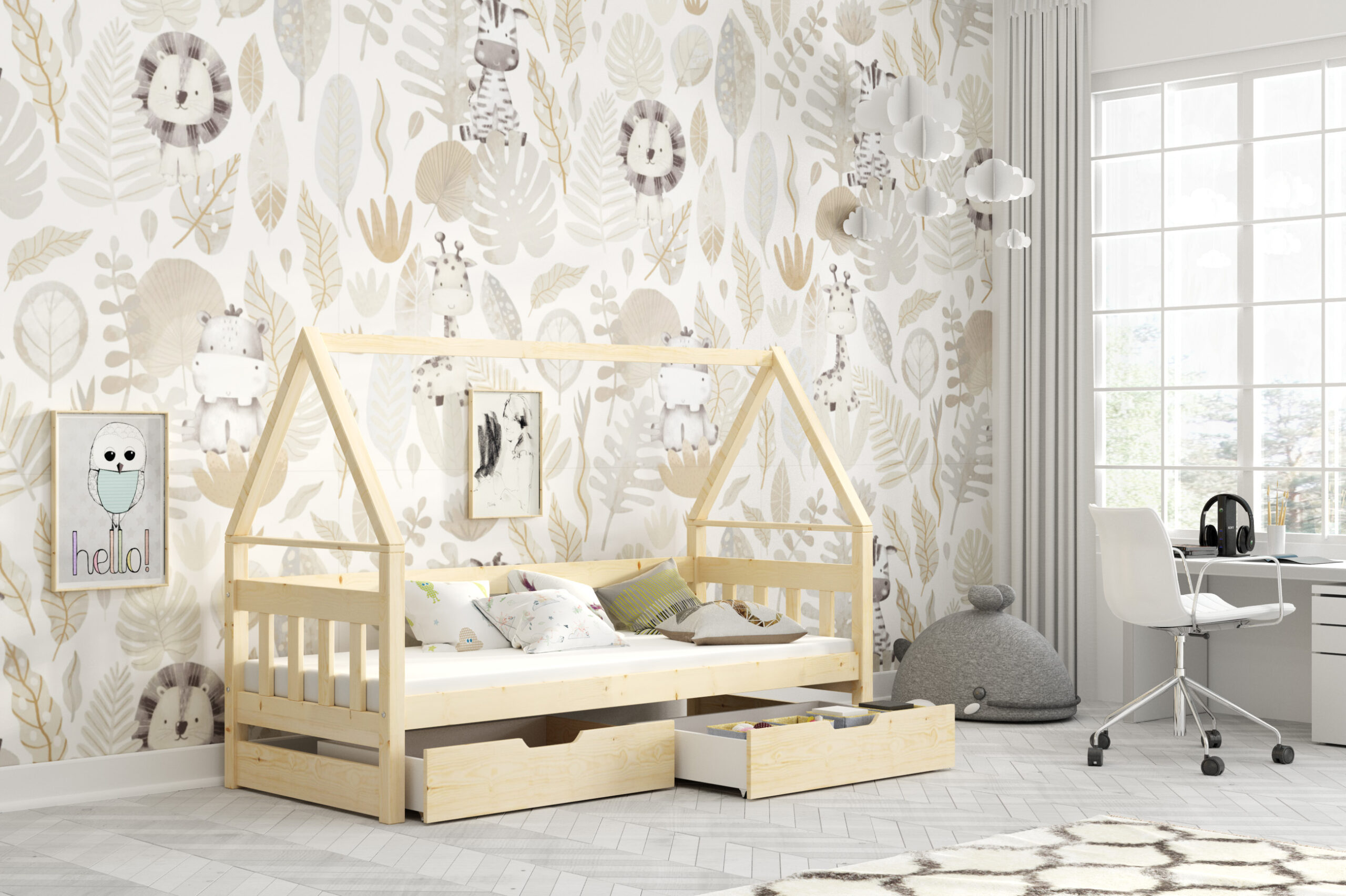 Strona główna Łóżka Łóżka dziecięce Łóżko pojedyncze DOMEK z szufladami sosna