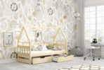 Łóżko pojedyncze DOMEK z szufladami sosna