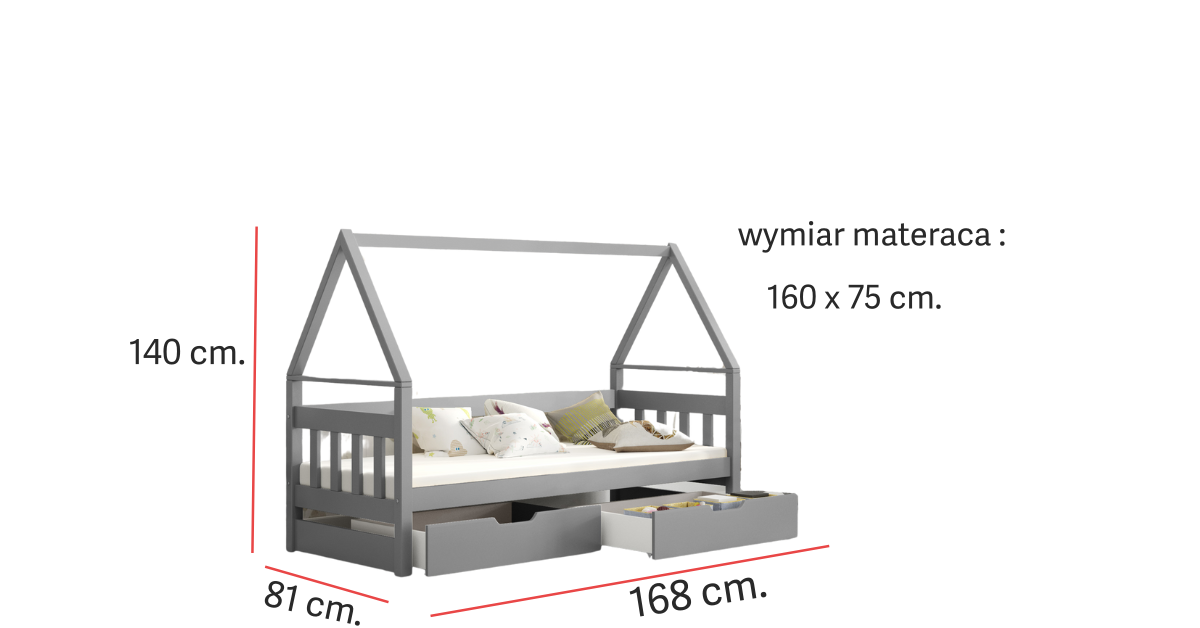 Łóżko dla dziecka DOMEK z szufladami szary 959,00 zł – 1099,00 złPrice range: 959,00 zł through 1099,00 zł