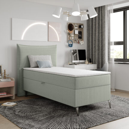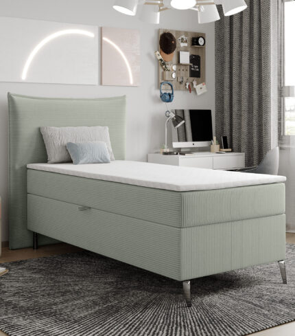 Łóżko młodzieżowe kontynentalne sztruks popielaty