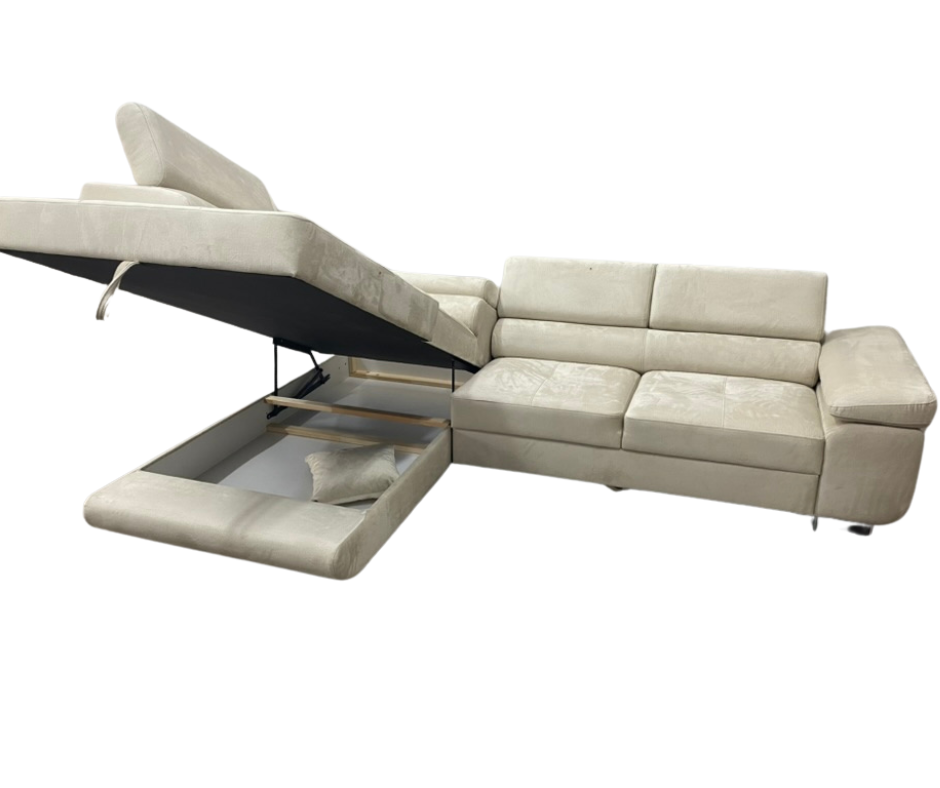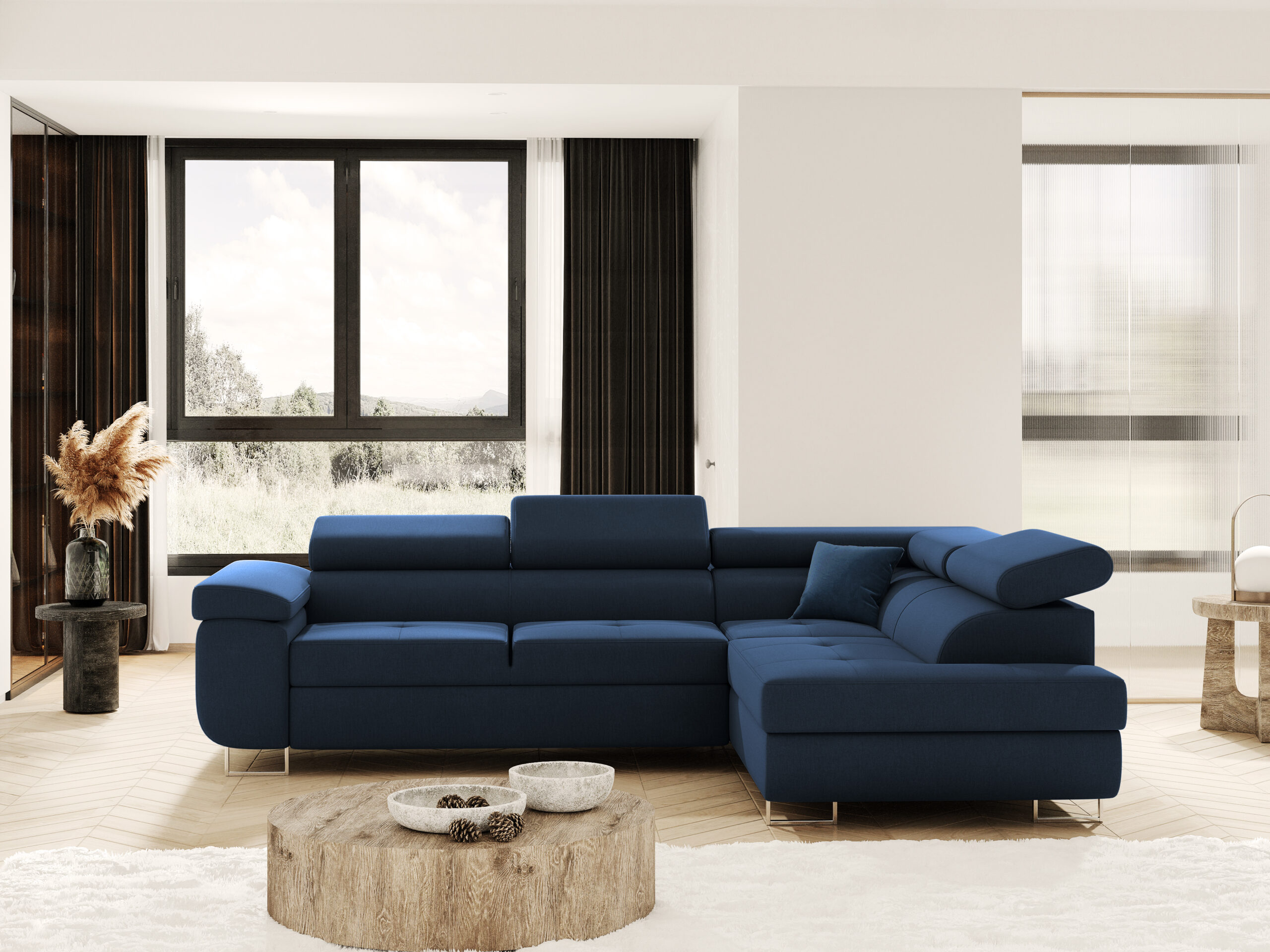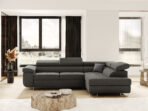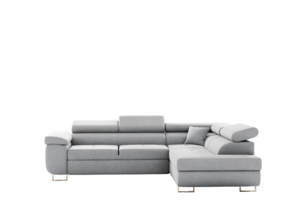 Narożnik Atesio w tkaninie Monolith z pojemnikiem na pościel i ruchomymi zagłówkami to funkcjonalny i wygodny mebel, który doskonale sprawdzi się w każdym salonie. Jedną z głównych cech tego typu narożnika jest jego pojemnik na pościel, który umożliwia przechowywanie koców, poduszek czy innych tekstyliów, co pomaga w utrzymaniu porządku.