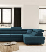 Narożnik Atesio z pojemnikiem na pościel i ruchomymi zagłówkami to funkcjonalny i wygodny mebel, który doskonale sprawdzi się w każdym salonie. Jedną z głównych cech tego typu narożnika jest jego pojemnik na pościel, który umożliwia przechowywanie koców, poduszek czy innych tekstyliów, co pomaga w utrzymaniu porządku.