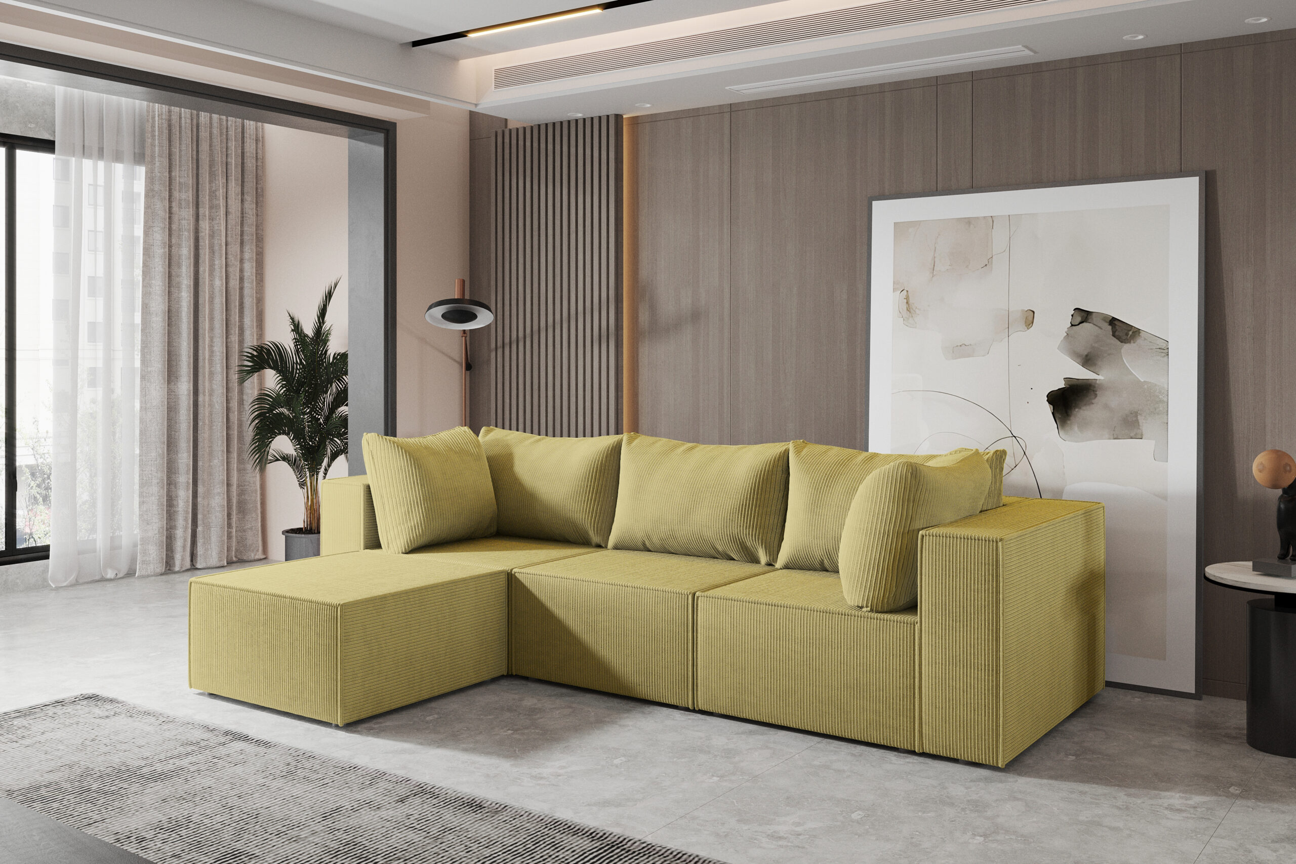 Narożnik ATESIO Monolith musztardowy z pojemnikiem na pościel