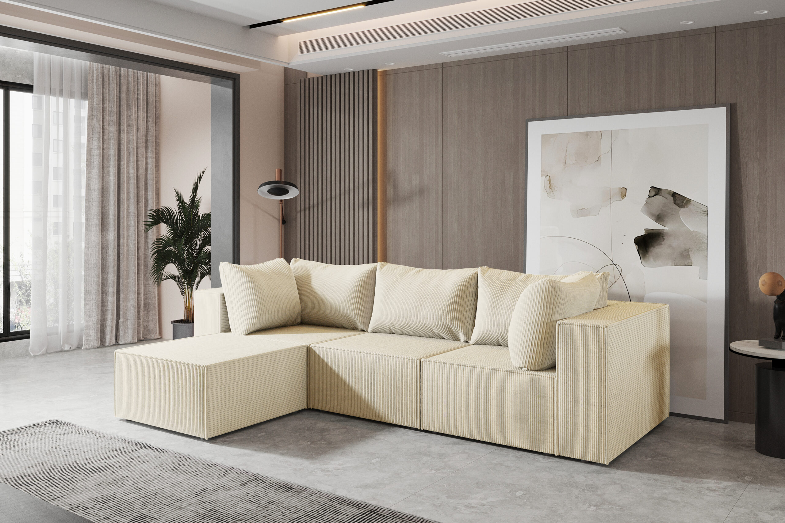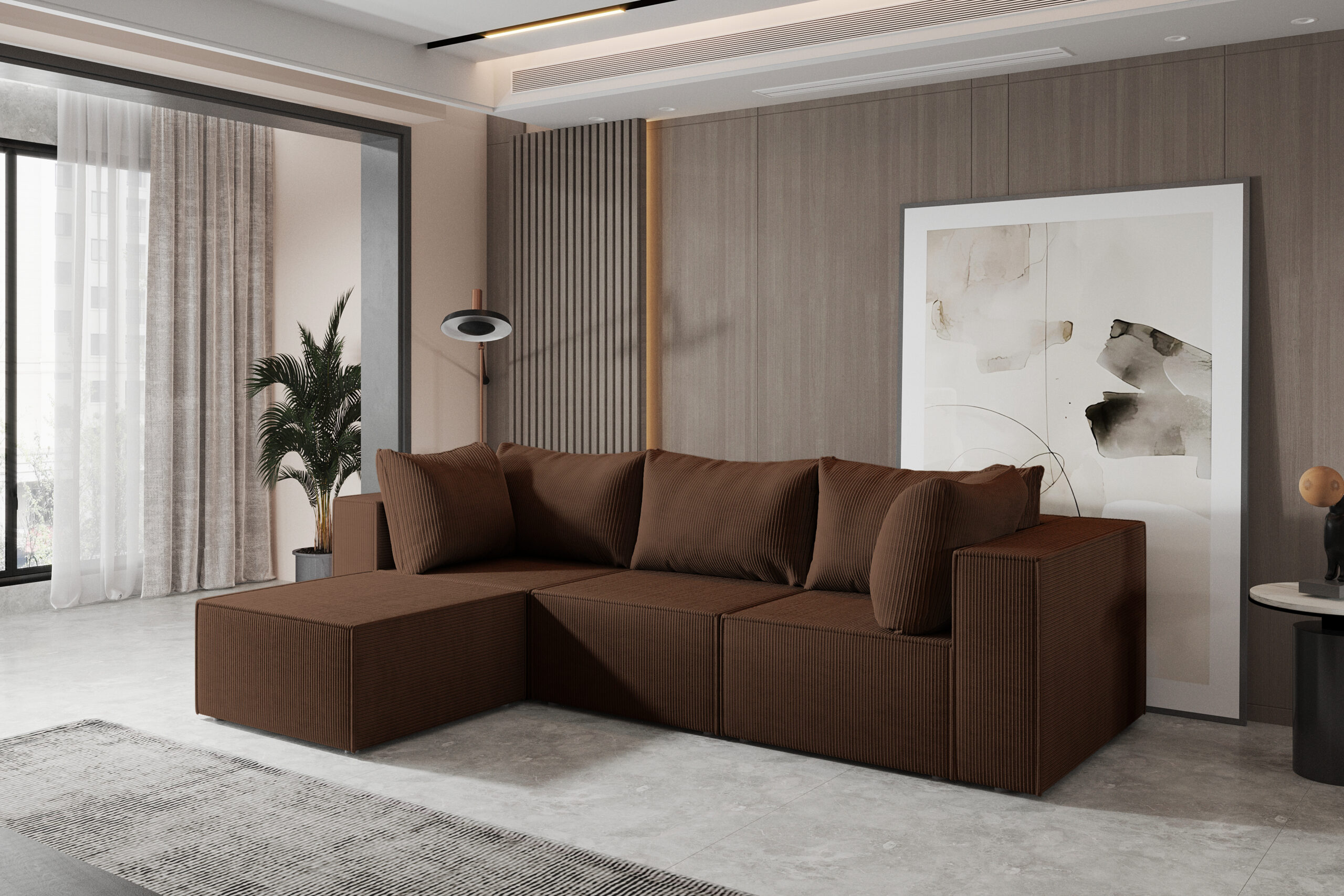 Narożnik sofa modułowa to kwintesencja stylu i funkcjonalności w jednym. Wykonany z najwyższej jakości materiałów, zapewnia nie tylko wygodę, ale również trwałość na lata. Dzięki swojemu przemyślanemu designowi doskonale wpasuje się w każde wnętrze, nadając mu nowoczesny i elegancki charakter.