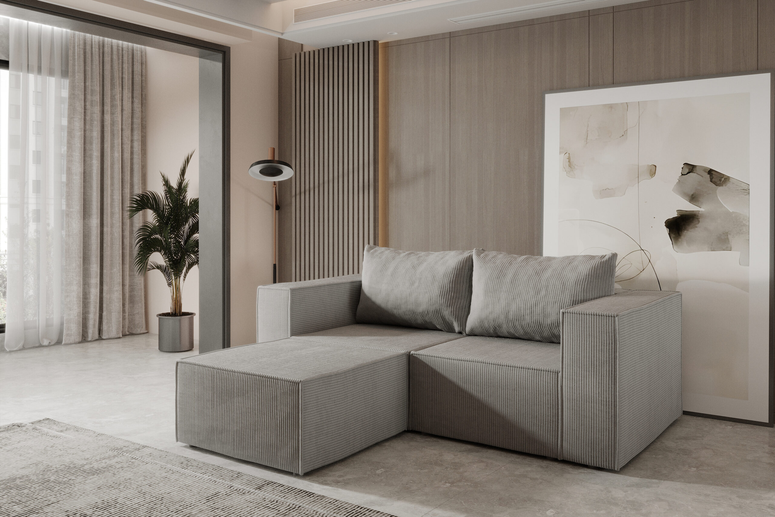 Duży narożnik rozkładany w tkaninie Monolith jasny szary