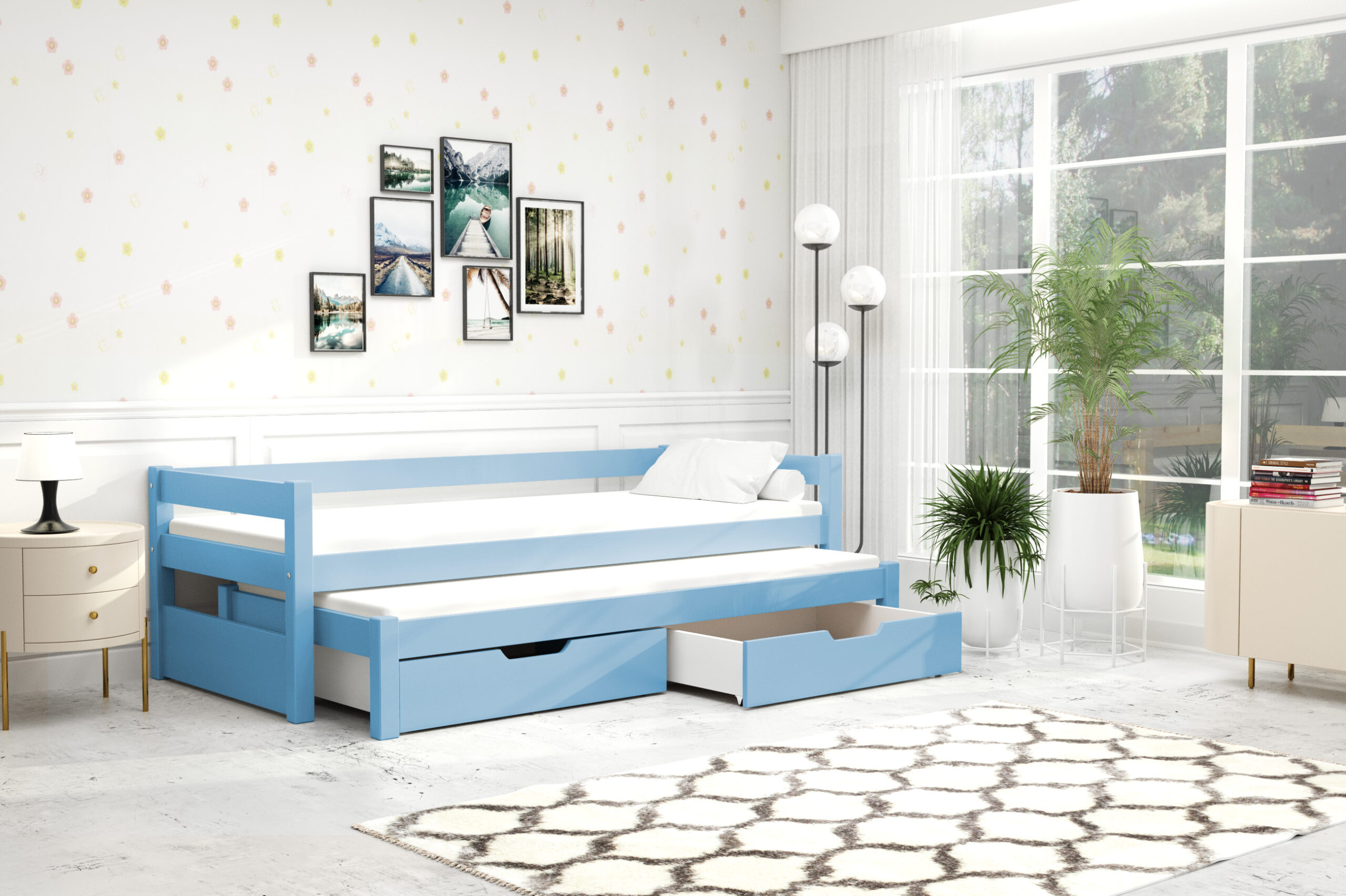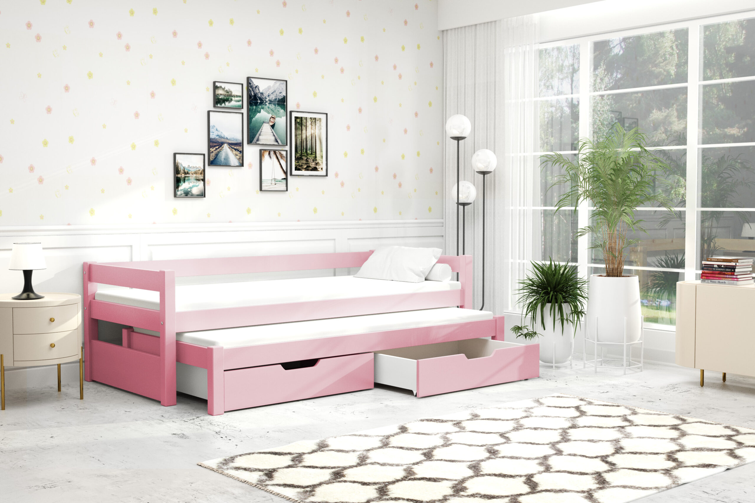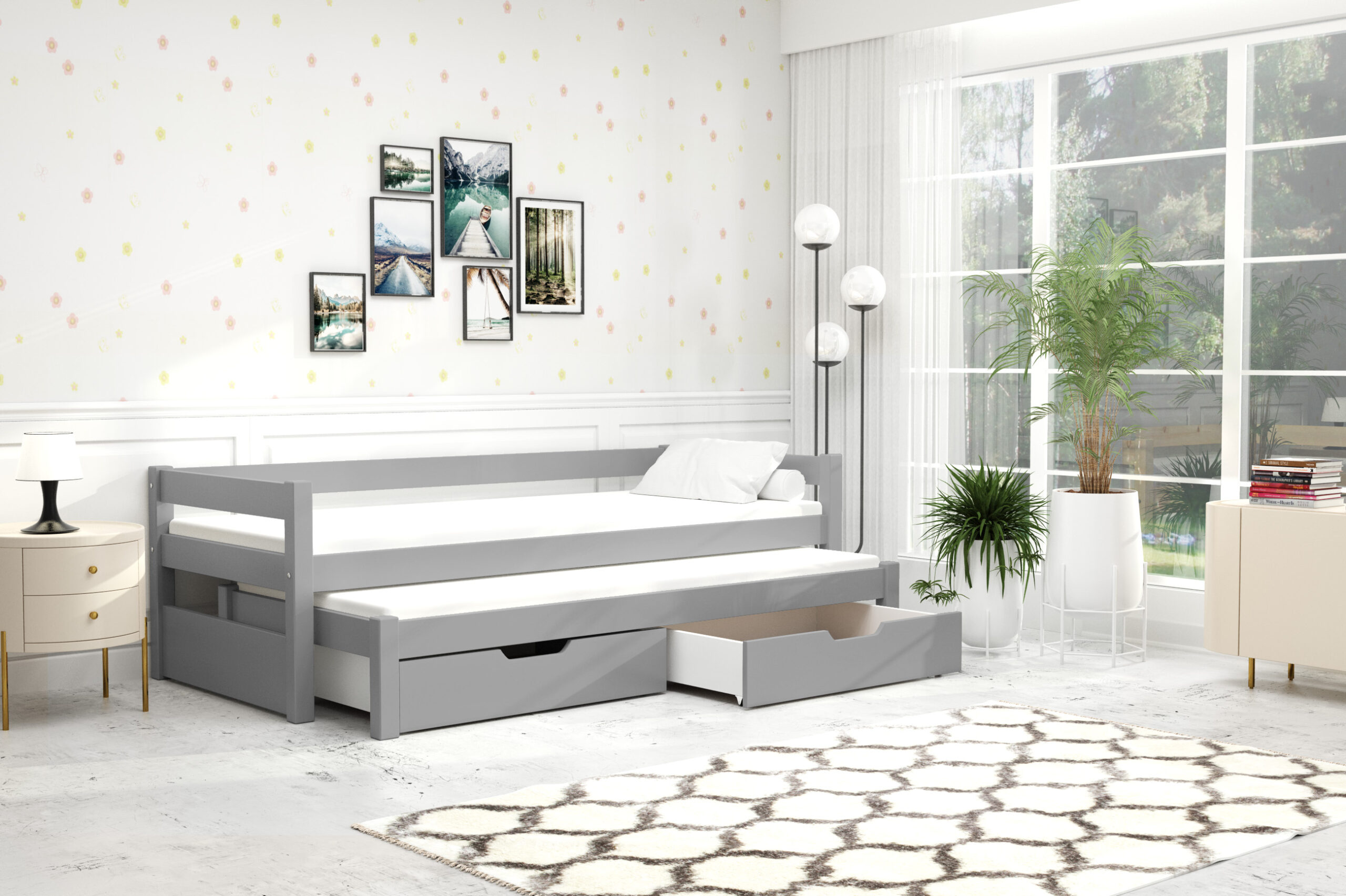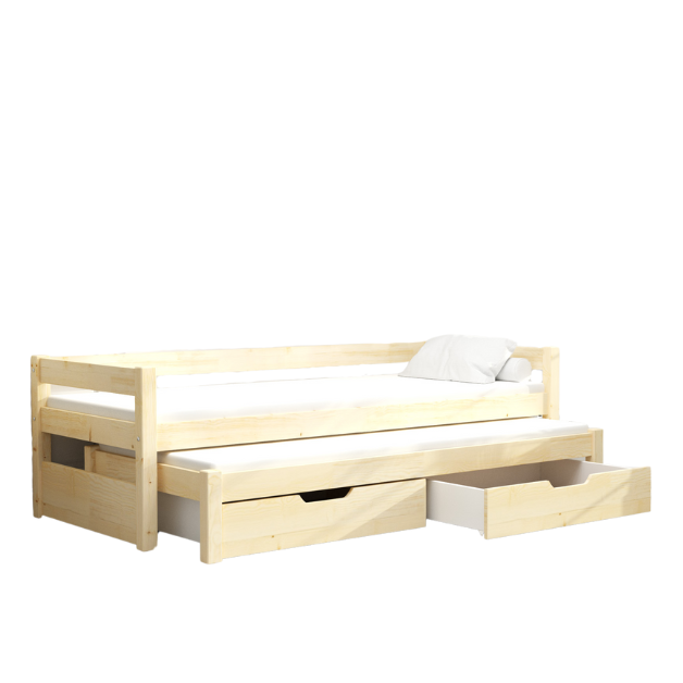 Szukasz praktycznego i bezpiecznego łóżka do pokoju dziecięcego? Nasze dwuosobowe łóżko dziecięce z litego drewna sosnowego to idealne rozwiązanie dla rodzeństwa lub dzieci przyjmujących gości. W zestawie znajdziesz dwa wygodne materace piankowe oraz funkcjonalne szuflady na pościel, zabawki czy inne drobiazgi.