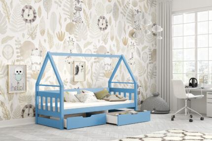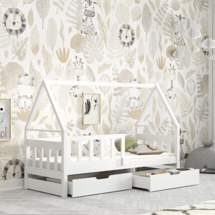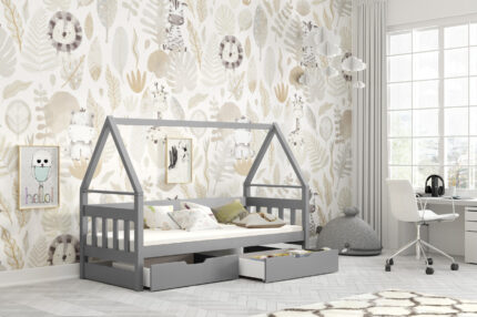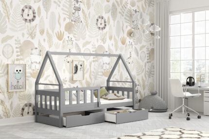Łóżko DOMEK z szufladami+ barierka + materac 180×75