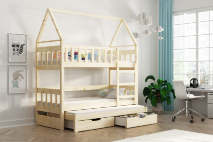 Łóżko piętrowe dla dzieci DOMEK 3 osobowe + materace