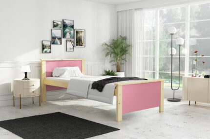 Trzyosobowe łóżko piętrowe dla dzieci z szufladami sosna+róż Sosna+róż