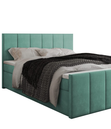 Łóżko kontynentalne kolor turkusowy dwa materace + dwa pojemniki