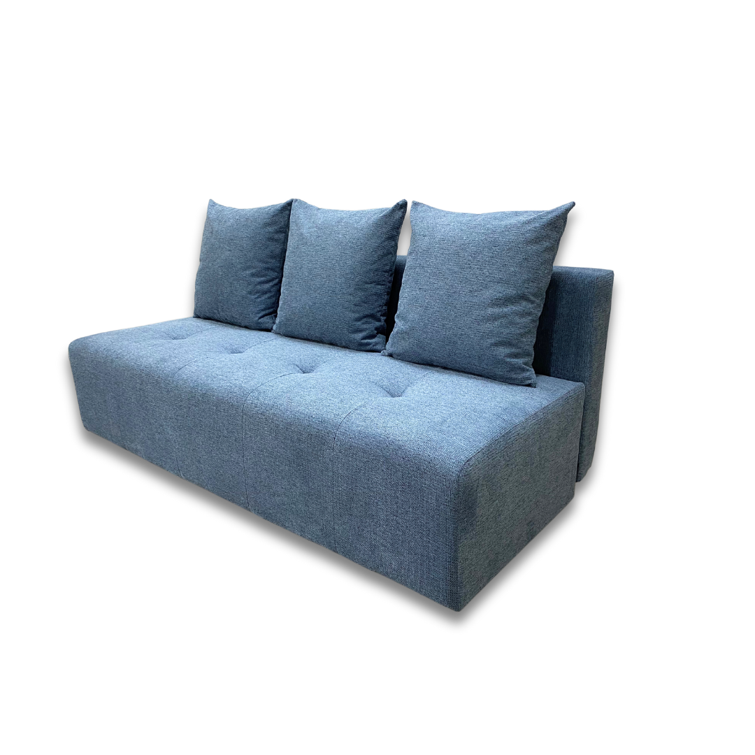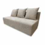 Nowoczesna kanapa rozkładana bez boków, w tkaninie strukturalnej plecionej. Wyposażona w poduszki, pojemnik na pościel i automat DL na sprężynie falistej – idealna do codziennego spania.